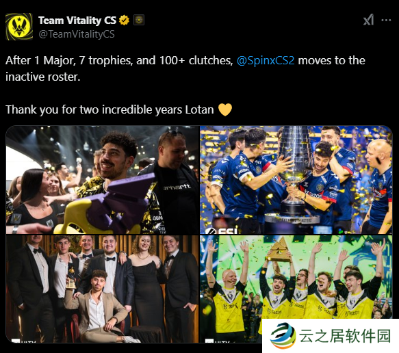 Vitality战队合作两年多后,Spinx被从主力阵容中移除。