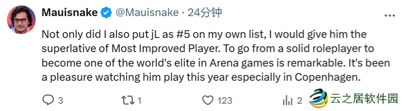 Mauisnake:我不仅在自己的榜单中将jL排在第5位,我还会授予他“进步最大选手”这一殊荣。从一名出色的团队型选手成长为竞技场比赛中的世界顶尖选手之一,这非常了不起。今年观看他比赛,尤其是在哥本哈根的赛事,真的令人愉悦。