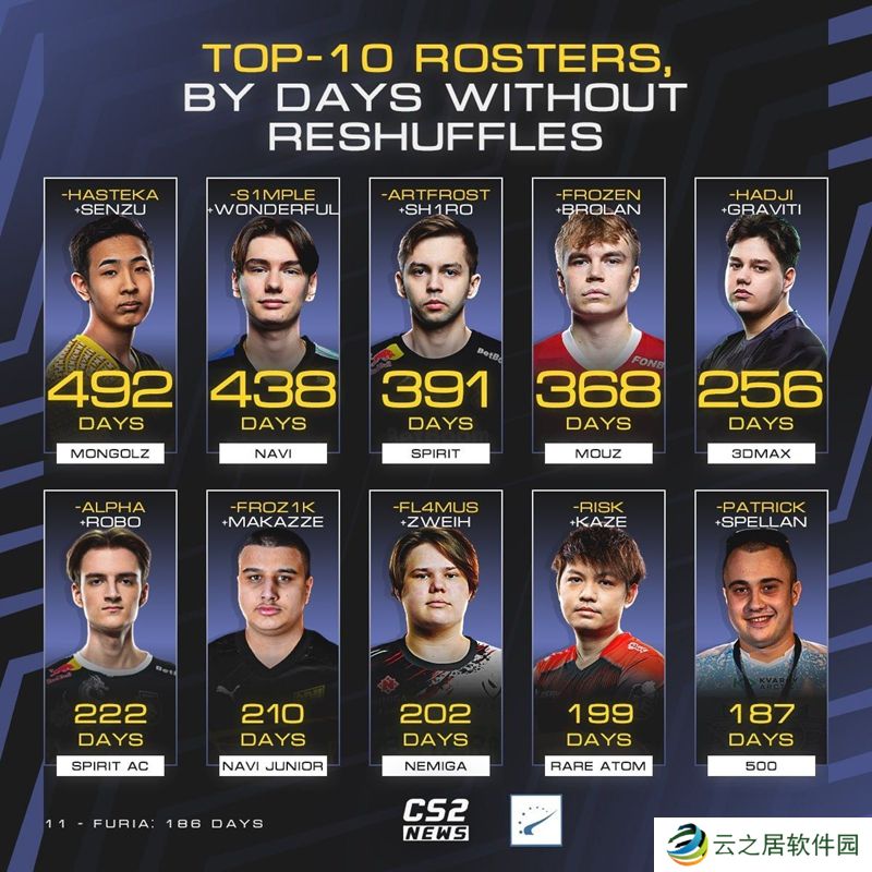 随着BLAST 赏金赛对阵队伍的确定,休赛期也即将迎来结束,各支队伍都进行了大大小小的变阵。然而也有许多队伍并未对阵容进行改动,接下来我们盘点十支长期未变阵的队伍: