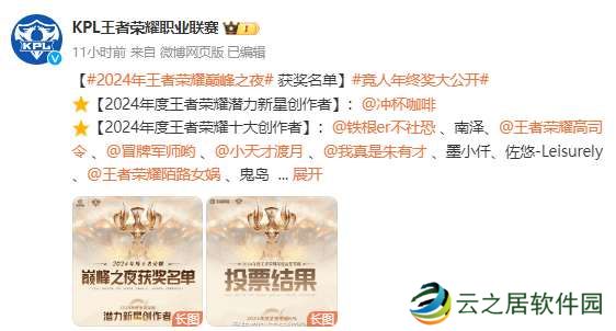 【2024年王者荣耀巅峰之夜 获奖名单】(KPL部分)