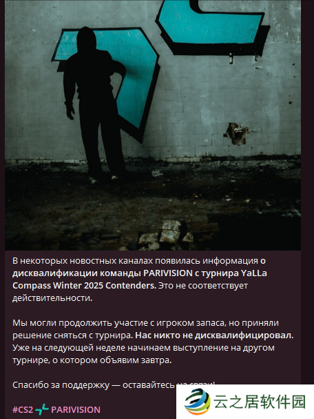 “一些新闻频道报道称,PARIVISION团队被取消了参加YaLLa Compass 冬季赛 2025 竞争者锦标赛的资格,但这不是真的。