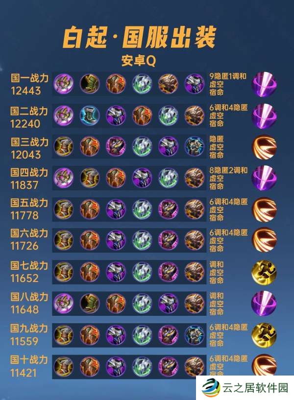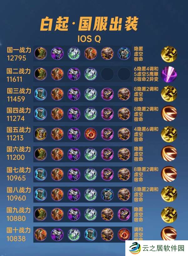 这篇文章我们来看一下40位国服白起的出装铭文汇总。