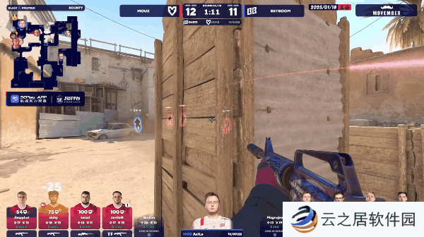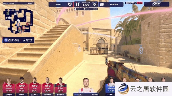 BLAST 赏金赛 S1,MOUZ对阵BB,图一双方难分伯仲,**两个加时后MOUZ以19-17获胜。但是图二进入自己选图的他们没能稳住,防守方A区被各种突破导致输掉选图。进入决胜图后双方同样焦灼,最终BB以13-11略胜一筹。