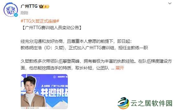 教练胡庄浩(ID:久哲),正式加入广州TTG赛训组,担任主教练一职