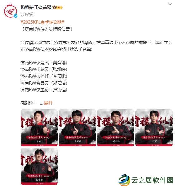 经过俱乐部与选手双方充分友好的沟通,在尊重选手个人意愿的前提下,现正式公布济南RW侠本次转会期挂牌选手名单: