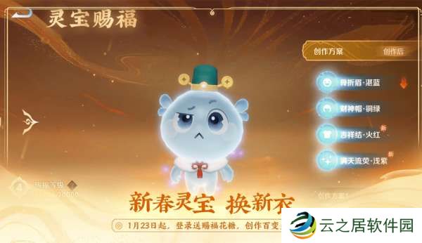 1月23日更新后,灵宝会有新春皮肤上线,登录就赠送福花糖,供大家创作自己的百变灵宝。