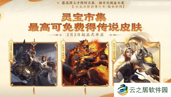灵宝市集会在2月2日开启,最高可以获得传说皮肤,市集中有干将莫邪的久胜战神,花木兰的冠军飞将,孙悟空的地狱火等皮肤,又到了找高价小蛇糕市集的时候了。