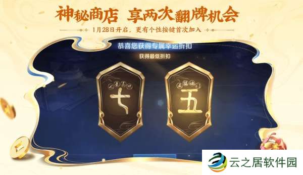 1月28日神秘商店来袭,这次的神秘商店有2次翻牌机会,抽到5折的几率大大提升,同时还会首次加入皮肤个性按键。