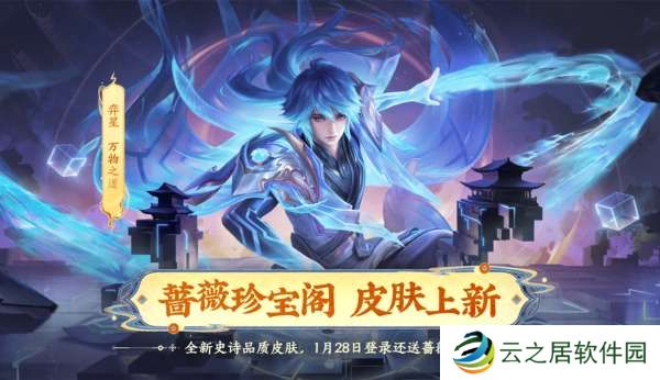 蔷薇珍宝阁会在新春期间限时开启,除了在1月28日登录就送25个蔷薇之心外,还会上架弈星的新皮肤—万物之道,不知道大家有没有150个蔷薇之心呢?还差多少呢?