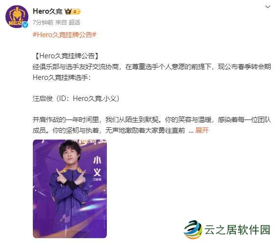 Hero久竞挂牌公告:打野位选手小义正式挂牌