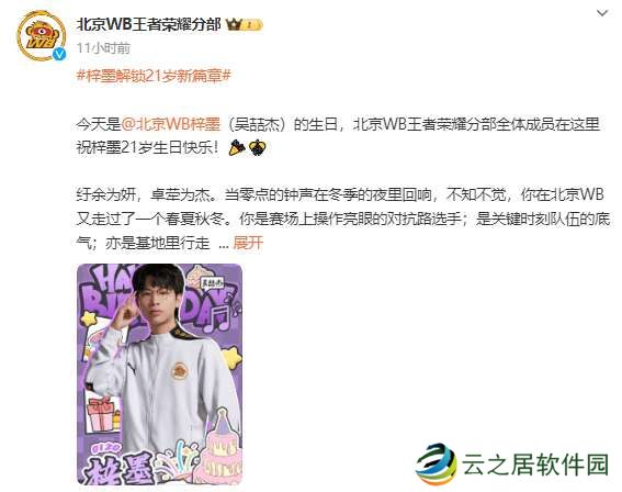 今天是北京WB梓墨(吴喆杰)的生日,北京WB王者荣耀分部全体成员在这里祝梓墨21岁生日快乐!