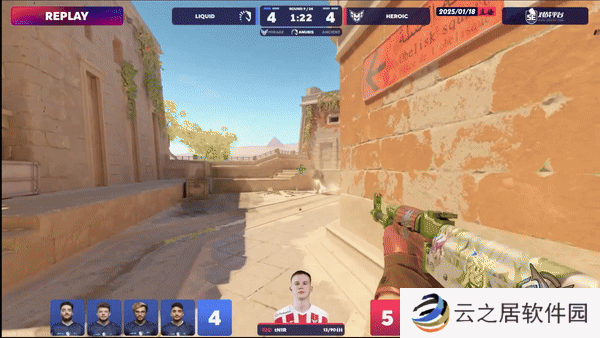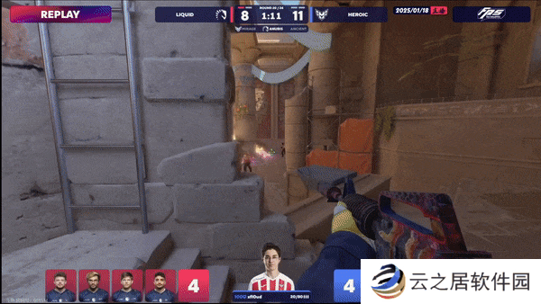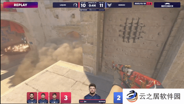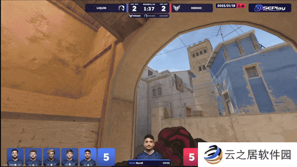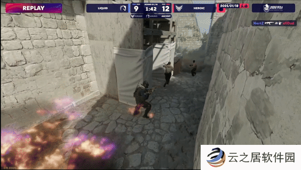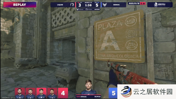 下半场攻守互换。液体选择拱门A1夹A但包点CT瞬秒A1,B小CT赶来缓解中路攻势,Heroic拿下下半场手枪局。