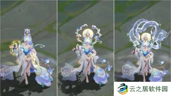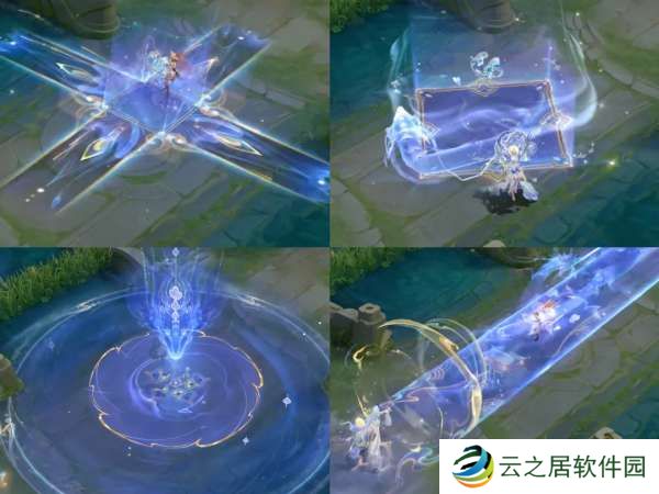 技能特效以蓝白色为主色调,融入了灵蛇法相、星河景象、水涡纹和蛇纹等元素。