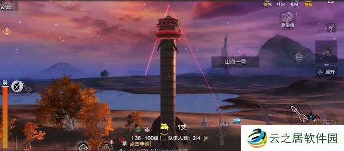 2、找到【山海一号】火箭,通过它可以把我们送到高空中,目前开服有火箭升空的活动,火箭在地图中就有标识。