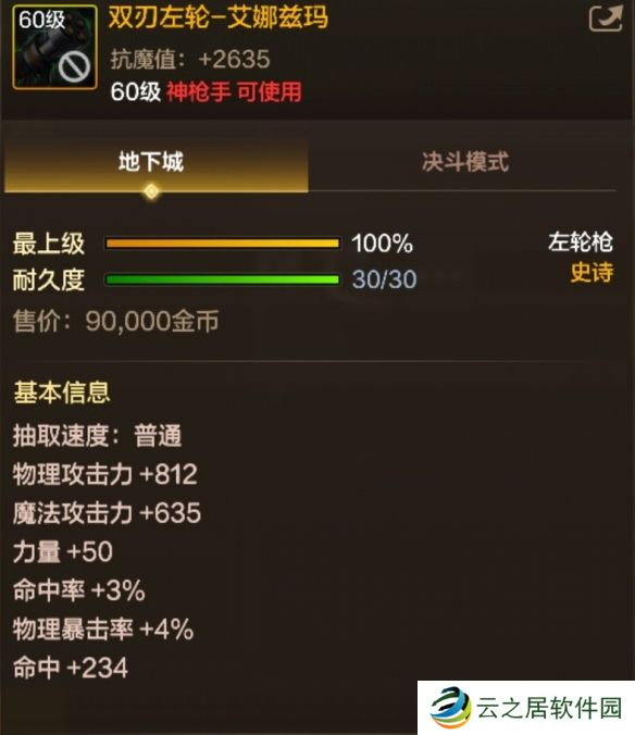 DNF手游双刃左轮艾娜兹玛图鉴-60级史诗武器双刃左轮艾娜兹玛属性效果