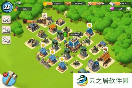 三、10本防野人靠山阵推荐星级:★★★☆☆10本的玩家很多还不能将树和石头清光,所以布局的时候以贴边为主,躲角落暂时还做不到。地雷均匀的分布在基地内,有效的防御野人,对于MM的杀伤效果也相当不错。主要的防御武器以哨兵塔为主,虽然后小加农炮的防御,但是敌人第一目标也是会清除小加农炮的。