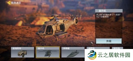 可供四人乘坐的直升机,除了驾驶位均可以开枪。同时直升机自带三枚诱饵弹,当被**锁定时会传来危险警报声,这时使用诱饵弹可以规避伤害。
