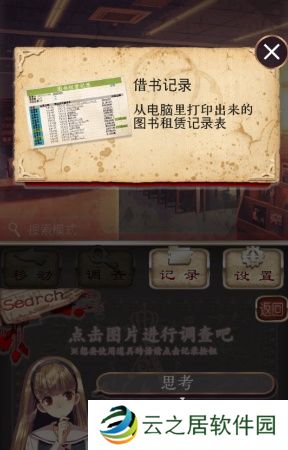 3、然后移动到图书馆,跟新出现的柴郡猫聊天,并选择调查电脑获得借书记录。