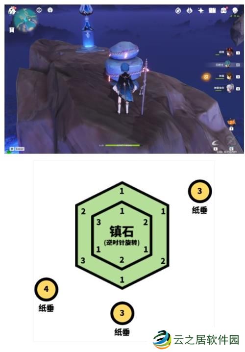 转动面前的相位之门,传送到天上即可找到镇石(在传送锚点旁边)。