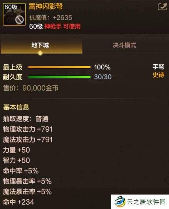 DNF手游雷神闪影弩图鉴-60级史诗手弩雷神闪影弩属性效果