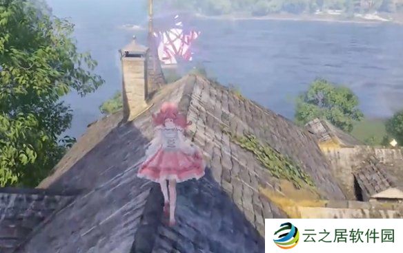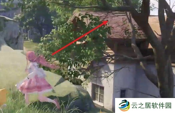 19、往箭头方向走,上房顶。
