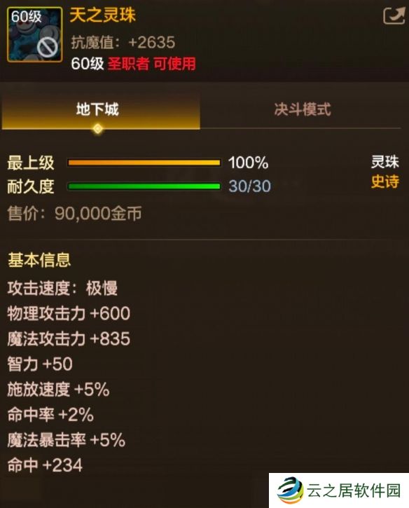 天之灵珠是DNF手游中的圣职者职业60级史诗灵珠,有着大幅提升力量智力属性,同时强化技能唤雷符的特效。那么接下来就让我们一起了解一下天之灵珠的属性和效果吧。
