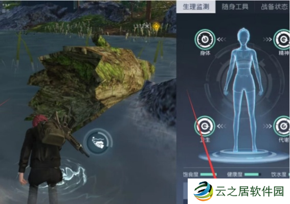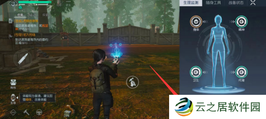 2、然后,进入游戏界面左下角的生存区域,通过右侧的生理状态检查功能继续。