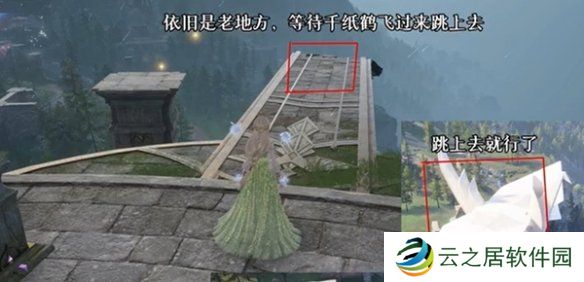 5、接着等到千纸鹤飞过来之时跳跃上去。