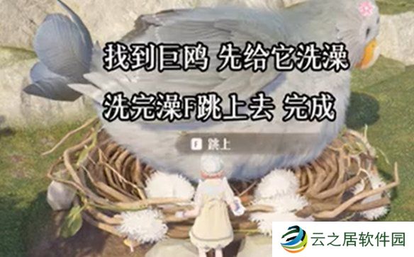 2、找到巨鸥,接着给它洗澡,洗完之后跳上去。