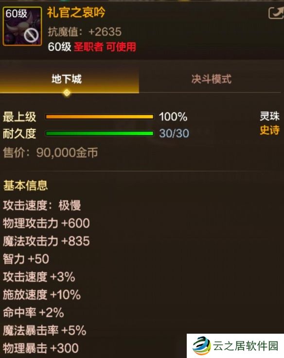 DNF手游礼官之哀吟图鉴-60级史诗灵珠礼官之哀吟属性效果