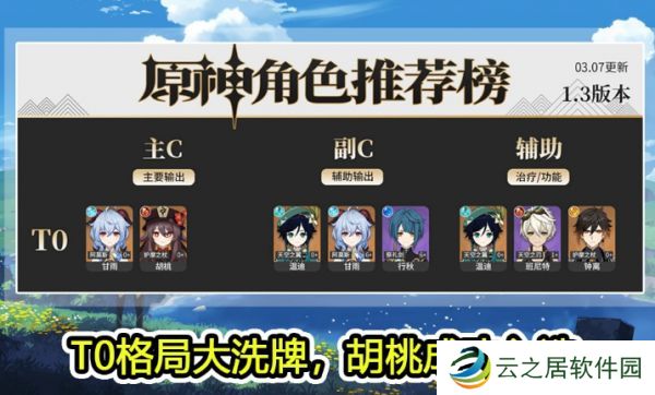 首先是T0级角色,主C变化很大,魈、公子、可莉和卢姥爷集体下线,甘雨和胡桃独占T0主C之列,而且只需要0命即可。