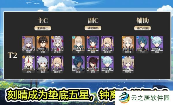 接下来是T2级角色,刻晴成为了本期榜单中排名垫底的五星角色,的确比较符合实情,另外,钟离作为主C使用的话,也可以排在T2级,和刻晴差不多,大家也不用意外,