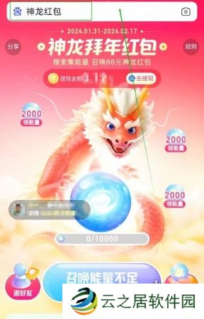 1、邀请好友参与活动即可领取奖励,奖励包括现金、神龙红包以及神龙能量。