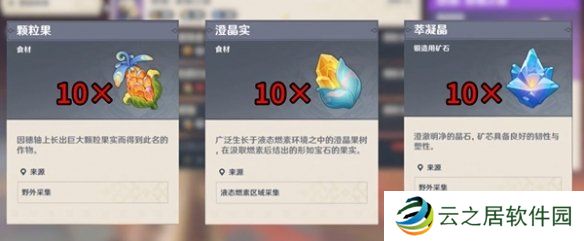 3、准备好颗粒果、澄晶实和萃凝晶这三种材料。