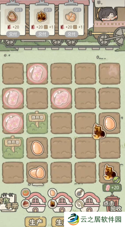 2、点击电池完成战斗后即可收集,根据上方的订单制作多个鸡蛋和蜂蜜,合成目标物品。