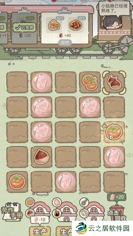 3、在银杏巷区域中继续收集电池,再合成蜂蜜、一篮番茄和一筐板栗。