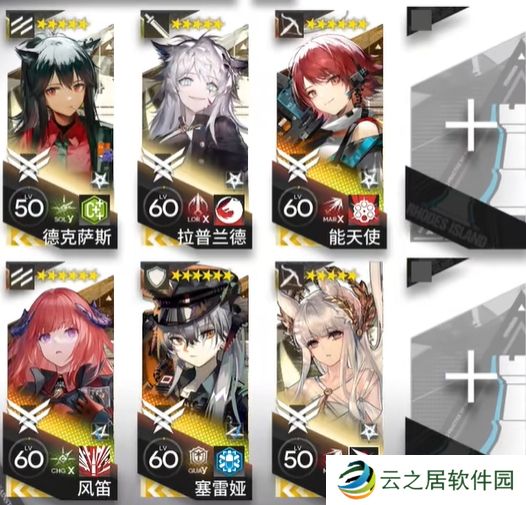 需求干员:德克萨斯、风笛(先锋x2),拉普兰德(领主),塞雷娅(奶盾),能天使、白金(速狙x2)