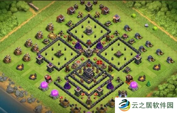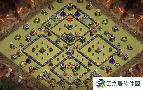 部落冲突9本最强防御布阵怎么搭配?现在部落冲突里面随着发展和更新,很多玩家都有一些防御效果还不错的防御阵,使得9本的可玩性也增加了很多,还不知道知道要怎么搭配的玩家和小编一起来看看部落冲突九级大本营最强阵型链接吧。