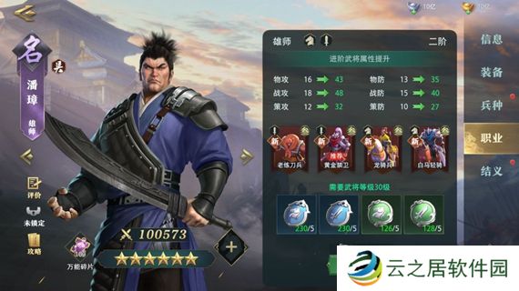 武将除了升级之外,还需要在升级后进行进阶。只有进阶之后的武将,可携带的兵种才会增加。(额外的兵种是基于武将原本可携带的两个兵种变化而来)