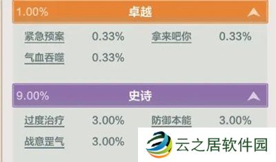 3、稀有—暴怒积累,有概率加最终造成伤害可叠加、战斗鼓舞,有概率获得鼓舞状态。
