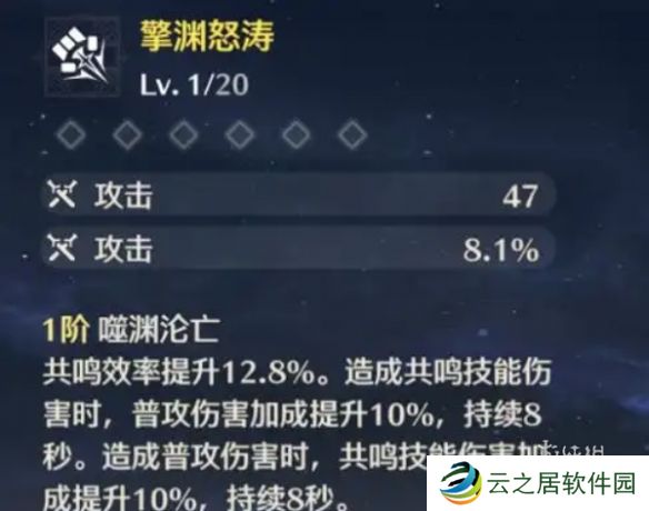 2、武器可提升装备者的共鸣技能的伤害,提升她的输出伤害。