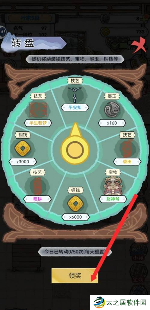2、抵达轮盘抽奖区域后,请点击页面的领取奖励部分,你每天最多有50次机会领取。