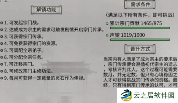 3、之后会触发传承事件,成功击败便能成为宗主。