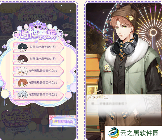 1、摩天轮之约:完成全部[奇景心选]互动后可于1月1日 00:00 起与他共赴摩天轮之约缔结甜蜜之吻。