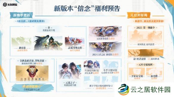 王者荣耀即将开启年度版本信念福利,玩家们完成相应的任务即可免费获得新皮肤、英雄等奖励,由于很多伙伴们不知道福利有哪些,接下来小编就为大家带来详细的汇总,感兴趣的伙伴们一起来看看吧。
