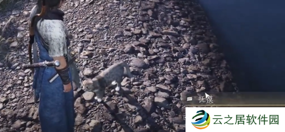 5、第四个:往河边去就能看到第四只猫咪,点击【抚摸】即可。