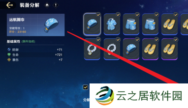 4、在分解装备的界面中,挑选需要分解的装备,然后点击右下角的“确认”按钮,即可完成分解操作。