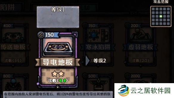 5、导电地板:该陷阱会对敌人造成AOE的雷电范围伤害,清杂能力比较强。