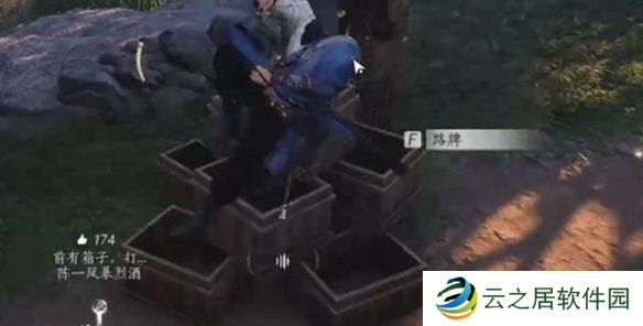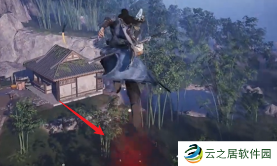 4、位置四:接着往东北方走,跟随指引跳下山,之后在木箱处使用千金坠。