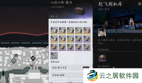 4、探索地图:玩家可以在赵飞烟私库中使用宋元通宝获得这些心法箱子。